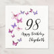 This pretty and whimsical 98th birthday napkin is perfect for a nice party and will set a fun and celebratory tone. This design features pink and purple butterflies, and is a nice feminine choice for a special event to celebrate a milestone birthday. Customize for your own birthday year, and search for "98" in my shop to see coordinating designs.