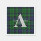 Os guardanapos tradicionais de papel xadrez feitos no padrão clássico de Abercrombie tartan, azul, verde e branco. Uma grande cinza leve, um monograma de letras e um texto branco passando por ele, estão prontos para personalizar. Excelente para qualquer ocasião e especialmente agradável para festas e comemorações.
