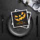 Vamos ficar assustadores com a face assustadora da jack-o-lantern no guardanapo de papel preto.