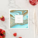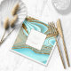 Este conjunto de design, com seu padrão abstrato de ondulações e veias fluentes de ouro reluzente, traz à mente formações rochosas atraentes, dunas de areia fluidas, e ondas suaves do oceano. As cores marcantes do mar e da areia para esse conjunto contribuem para o apelo. O guardanapo de papel mostrado aqui tem todas as informações acima com modelo para adicionar facilmente uma obrigado à sua mensagem, seus nomes e data do casamento. Procure ID903 para ver outras opções de cores e peças de coordenação para esta coleção de casamento única.