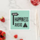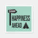 Simples design gráfico de texto mostrando uma pequena tenda um cartaz de acampamento e um texto dizendo: Felicidade à frente.