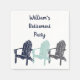 Create custom party napkins for retirement parties and other special events. These napkins feature illustrations of wooden Adirondack chairs in navy blue, light aqua blue and charcoal gray and are ready to be personalized with your message in navy blue script lettering.