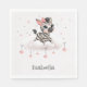 Cute baby shower or birthday paper napkin featuring adorable little female zebra wearing a cute pink bow sitting on the clouds with some love hearts