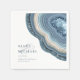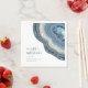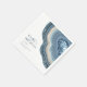 Nem todos os designs de casamento são criados iguais. Os layouts assimétricos para algumas das peças neste impressionante jogo de casamento provam que isso é uma coisa boa! O guardanapo de papel de casamento coordenado mostrado aqui mostra um sotaque de canto com bandas de cor onduladas em tons de azul empoeirado a bege arenoso ao redor de um efeito de cristal brilhante para formar um geode/agate. Adicione facilmente seus nomes, data de casamento e mensagem pessoal de 'obrigado você' usando o modelo fornecido. Procure ID647 para ver todas as peças de coordenação neste conjunto.