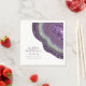 Not all wedding designs are created equal. The asymmetrical layouts for some of the pieces in this striking wedding set prove that's a good thing!. The coordinating wedding paper napkin shown here features a corner accent with wavy bands of color in contrasting shades of violet purple and green around a glittering crystal effect to forming a geode/agate. Easily add your names, wedding date and personal 'thank you' message using the provided template. Search ID647 to see all the coordinating pieces in this set.