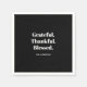 Adicione um toque de elegância e gratidão modernas à sua mesa de férias com estes negros "Grateful. Obrigado. Abençoado." guardanapos. Apresentando uma tipografia branca ousada sobre um fundo preto elegante, elas são a combinação perfeita de chic e significativa para Ação de Graças, Ação de Amizade ou qualquer celebração de outono. Ideal para jantadas de Ação de Graças, casamentos outono, horário de cocktail e reuniões familiares. Disponível com ou sem personalização — adicione seu nome de família ou deixe-o como um design universal, pronto para hospedagem. A design minimalista combina perfeitamente com configurações modernas, rústicas ou elegantes de mesa. Torne a sua celebração memorável com guardanapos que lembram a todos o que realmente importa — gratidão, família e bênçãos.