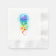 Água-viva grande, iridescente, desenhada artisticamente, brilhante, com longos tentáculos em branco, pintada sobre fundo de aquarela multicolorido. Água-viva arco-íris.