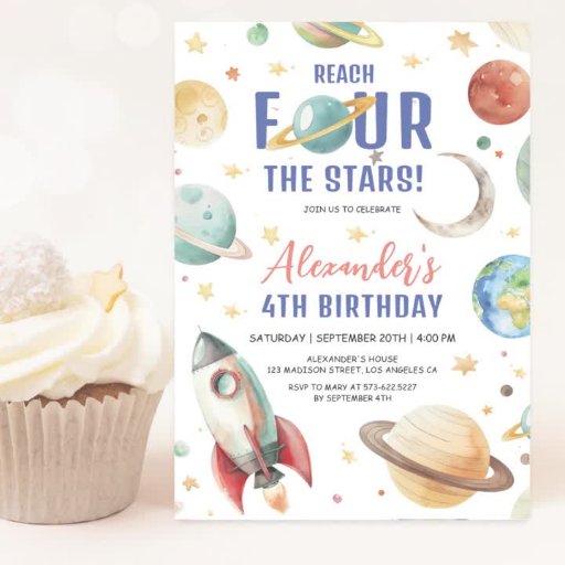Faça seu aniversário de 4 anos realmente fora do mundo com nosso "Alcance Quatro Estrelas" Garoto Galáxia 4ª Festa de Aniversário Napkins! Perfeito para uma celebração estelar, esses guardanapos adicionam um toque cósmico às festividades. Pegue o seu hoje e garanta um bom momento galáctico! 🚀 🌟 🎉 🎂