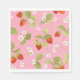 Os morangos bonito, cor-de-rosa e vermelhos são apresentados nestes guardanapos de papel de qualidade. Belo verão, primavera design. Perfeito para festas de verão, no pátio ou no interior, excelente para graduações, chás, aniversários. Design de garota divertida