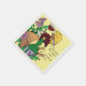 Planta de almoço ilustrada colorida com queijo, vinho, uvas e pão, decorada com flores cor-de-rosa e texto "Queijo e vinho fazem tudo" em guardanapos de papel, ideal para festas de queijo e vinho.