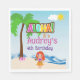 Praia tropical O aniversário de Luau personalizou guardanapos de papel, com uma menina fofa, palmeira e cena de praia, com texto fácil de personalizar.