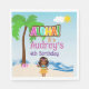 Praia tropical O aniversário de Luau personalizou guardanapos de papel, com uma menina fofa, palmeira e cena de praia, com texto fácil de personalizar. Conclua a sua festa de verão com este sinal personalizado, excelente para crianças ou adultos.