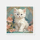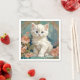 Napkins apresentando um gato branco no estilo de Alphonse Mucha! Este gatinho liso e de olhos azuis posou com flores cor-de-rosa e cobertores azuis. Um presente fabuloso para amantes de gatos e colecionadores de Art Nouveau!
