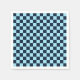 A blue and black checkerboard pattern with evenly spaced squares. The repetitive design creates a sense of symmetry and optical illusion.