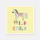Adorável arte popular ao estilo escandinavo no gráfico do cavalo doce e nas letras que soletram "criança selvagem" em fundo amarelo pastel