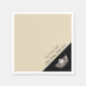 Um guardanapo de papel mostrado com uma impressão pastel Silver em uma cor de fundo bege de champanhe, bordas brancas com um canto preto atrás da coroa e seu nome de paginação personalizado. O texto de exemplo diz: "Miss Valley Colinas Pageant". Personalize para sua preferência ou entre em contato conosco e nós personalizaremos para você.