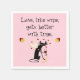 Amor, como vinho, melhora com o tempo. O Gato Cabernet é doido de amor. Ele até tem asas, como Cupido, mais ou menos. E um arco e flecha que ele ainda não conseguiu. Mas ele ainda está segurando um copo de seu vinho tinto favorito. Porque amantes que estão apaixonados há muito tempo (pelo menos um mês) sentem seu amor florescer e crescem. É assim que o ditado diz. Aqui está um conjunto de guardanapos de coquetel com ele mesmo e este vinho oportuno dizendo para o Dia de os namorados. Excelente para uma reunião de Dia de os namorados. Mas quem precisa de uma desculpa para se juntar em nome do amor por qualquer razão?