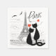 Ilustração do amor de gato com o design de texto "Paris" e gatos pretos apaixonados, corações vermelhos, pássaros, Torre Eiffel e decoração de cena em Paris