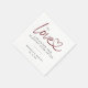 Guardanapos de papel bordo de casamento em coração ligando "para amar o riso e ser feliz para sempre" modernos e elegantes.