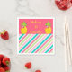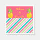 Estes adoráveis guardanapos apresentam dois abacaxis no topo num fundo cor-de-rosa. Entre os ananases está o nome do casal escrito em amarelo. Abaixo do abacaxi há um padrão riscado diagonal azul, verde e rosa. Absolutamente respiração. Faça seu pedido hoje mesmo!