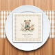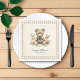 Crie um ambiente rústico memorável em seu chá de fraldas com esses guardanapos charmosos. A design apresenta um doce ursinho de pelúcia aquosa cercado por um coelho e raposa, aninhado dentro de uma delicada borda de gingham bege. Perfeito por adicionar um toque de elegância e reluzente à sua capa de sopa, esses guardanapos personalizados são ideais para uma comemoração temática da floresta. Eles certamente serão um sucesso com convidados, adicionando um detalhe especial ao seu evento.