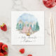 A coordenação de guardanapos de papel faz parte dos produtos de decoração da parte de papel que correspondem a este pacote de convites. Trabalho de arte de aquarela de montanhas, florestas e lindos animais de floresta com flores no cabelo e uma tenda cor-de-rosa e cinza empoeirada numa viagem de vidro e acampamento! O texto da tipografia de caligrafia de script termina na design. Arte pintada por uma artista internacionalmente licenciada, Audrey Jeanne Roberts, copyright.