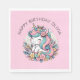 Bonitos guardanapos de papel festa de aniversário personalizados, cor-de-rosa e azul, de uma menina. Um unicórnio bonito rodeado de flores. Bonita para qualquer menina que ama unicórnios e flores!