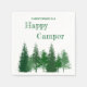 Feliz aniversário de camper com árvores florestais em vários tons de verde