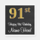 Este sofisticado, na moda, e elegante design de guardanapo de papel temático de aniversário apresenta um grande número ordinal "91ruas" com um padrão de gradação falsa/imitado inspirado em ouro, mais a mensagem de saudação de aniversário "Feliz aniversário de 91ruas", e um nome editável numa letra estilo script. Também tem um fundo de cor preta. Os guardanapos de papel com tema de aniversário como este podem ser usados numa festa de aniversário comemorando o aniversário de 91ruas de alguém. [~Z0000516]