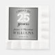 Celebre seu aniversário especial de casamento de 25 prata com esses "Cheers" para 25 anos de papel de aniversário de casamento guardanapos. Estes guardanapos de papel para a festa de 25 anos apresentam uma borda preta e prateada com o texto que diz "CHEERS TO 25 anos". Personalize este item com o seu primeiro e sobrenomes e a data do evento. Simples, chique e elegante para a festa perfeita de 25.