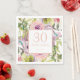 Folhas florais e verdes cor-de-água roxas, amarelas e cor-de-rosa com guardanapos de papel aniversário de 30 anos para mulheres com brilho dourado personalizados com seu nome e data de festa.