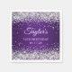 Crie seus próprios guardanapos de papel roxo e brilhante para sua festa de aniversário. Adapte o texto para outra fabulosa celebração de aniversário de marcos. Faux prata brilha cintilante com faíscas contra uma imagem mágica roxa e escura. Todos os elementos cintilantes, tolos e brilhantes neste design de gradiente moderno são gráficos artísticos que impressão gostam de uma imagem.