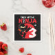 Este design de tema do aniversário de criança Ninja é perfeito para o seu pequeno aniversário, ninja, que faz 3 anos! Excelente para meninos e meninas de 3 anos que gostam de ninjas, karatê, taekwondo, judô ou outras artes marciais. Apresenta 'This Little Ninja Is 3' w/ símbolo japonês para Ninjutsu & cartoon ninja karate chutar gráfico do aniversariante ou a garota vai amar!