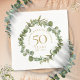 Com uma elegante grinalda de folhagem floral silvestre, este guardanapo de aniversário de casamento de 50 anos pode ser personalizado com as suas informações especiais de aniversário em texto dourado elegante. Concebido por Thisisnotme©