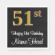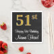 Este sofisticado, elegante e luxuoso design de guardanapo de papel de aniversário apresenta um grande número ordinal "51ruas" com um padrão de gradiente de imitação/falsa inspirado em ouro, além da mensagem de saudação de aniversário "Feliz aniversário de 51ruas", e um nome personalizado em uma fonte estilo script. Também tem um fundo de cor preta. Os guardanapos de papel temáticos de na moda de aniversário como este podem ser usados numa festa de aniversário celebrando o cinquenta primeiro aniversário de alguém. [~Z0000516]