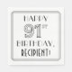Este 1920 da década de 1930 inspirou o estilo de deco da arte, o design de guardanapo de papel com tema de aniversário apresenta a mensagem "HAPPY 91RUA BIRTHDAY", e um nome de destinatário editável. O número "91RUAS" tem uma aparência geométrica de rico, e há também uma fronteira com várias linhas em torno da mensagem de saudação de aniversário. Os guardanapos de papel temáticos de aniversário luxuosos como estes podem ser usados numa festa de aniversário para alguém que está comemorando seu 91º aniversário. [~Z0000644]