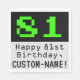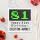 Este design de guardanapo de papel nerd e divertido, com tema de aniversário, apresenta um grande número de jogos de vídeo verde "81" em um fundo preto colorido. Também apresenta a mensagem de saudação de aniversário "Feliz aniversário de 81ruas", e um nome que pode ser personalizado. Os guardanapos de papel de bobo como este podem ser usados em uma festa sendo realizada para celebrar o aniversário de 81ruas de um programador de computador, um cientista, ou alguém que aprecia jogos de computador de 8 bits. [~Z0000404]