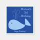 Uma baleia azul e bonita com água vazando está nadando para desejar a um menino ou menina especial, Feliz Aniversário. Apenas personalize e preencha o nome e o ano do seu filho para completar a design. Peixe azul claro sobre um azul escuro, fundo. Manter, alterar ou eliminar qualquer texto.