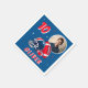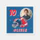 Foto de Festa de aniversário de Cartoon de Capa de Futebol Napkins. Núcleos divertidos e modernos de aniversário de futebol. Apresentando uma ilustração ousada de um futebol e capacete em cores azul e vermelha. Adicione sua foto, nome e idade.