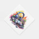 guardanapos de papel de festa de aniversário. Vermelho, azul, amarelo e verde. Ilustração Ai watercolor de fones de ouvido, controladora de jogos e outros acessórios de jogos.