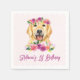 Adicione um sotaque fofo à capa do seu evento com estes guardanapos de papel personalizáveis. Apresenta ilustrações de aquarela de um recuperador de ouros giro e flores roxas, vermelhas, laranja e cor-de-rosa. Personalize adicionando seus detalhes. Esses guardanapos de papel para recuperação de ouros são perfeitos para aniversários, chás de fraldas e outros eventos.