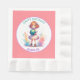 Uma boliche de anime fofa, tema Festa de aniversário, guardanapos personalizados. Em roxo, rosa e turquesa.