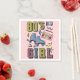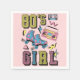 Ilustração colorida com estilo Memphis com design de texto e skate de rolo, caixa de boom, cassete e formas geométricas com "anos 80 Rapariga"