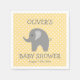 Costume de amarelo pastel e cinzas bonitinhos de elefantes chás de fraldas guardanapos personalizados para chuveiros de bebês com animais de zoológico. Design neutro com nome e data de nascimento. Ilustração adorável para a criança. Mude de cor para rapazes ou raparigas. Crie seus suprimentos de diversão com texto personalizável. Adicione sua própria cor como; rosa claro pastel cinza azul roxa amarela, etc. Ótima ideia para a nova mãe, para ser mãe. Também é engraçado para a festa de primeiro aniversario infantil. modelo de tipografia na moda com cinza e padrão de bolinhas brancas. Descartáveis de papel descartável com impressão de pokadot pequeno. Impressão de polimento.