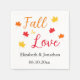 Apaixonar-se por presentes personalizados de eventos com paleta de cores vermelha, laranja e amarela de outono com folhas de maple. O texto pode ser personalizado para um casamento, chá de panela, chá de fraldas ou qualquer outro evento