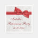 Guardanapos do partido Elegante para aposentadoria feminina. Linda cor damasco branca com espirais e florescimentos de ornamentados e uma imagem bonito, na moda, bonita, vermelha de arco e fita. Estes serviços glamourosos, chicos e clássicos são lindamente sofisticados e são decorados/impressos apenas no lado frontal. NOTA: todos os produtos do Zazzle têm imagens impressas em formato plano. Arcos e imagens de fitas adquiridas de designs digitais por elena. Cor damasco por Doodles Deliciosos. Se precisar de assistência para personalizar seu produto, entre em contato comigo através da minha loja e eu ficarei feliz em ajudar.