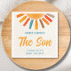 Este guardanapo de chá de fraldas com o tema do sol é decorado com um sol colorido e uma tipografia na moda num fundo creme. O texto é personalizável. Original Watercolor © Michele Davies.