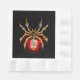 Aranha mecânica, com pá-pá de ouro, engrenagens de latão e uma lâmpada de vidro vermelha sobre fundo preto. Estilo Steampunk.