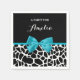 Fraldas de impressão de papel girafa preto e branco com uma fita azul-aqua de tendência amarrada em um arco feminino. Personalize este design impressão de animal fofo adicionando o nome da garota da festa. Imagem impressa plana, NÃO arco real.