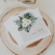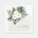 Celebre a noiva com esses guardanapos modernos e elegantes para chá de panela de noiva, apresentando um buquê floral tropical branco e verde em um arco de cor de pedra clara.